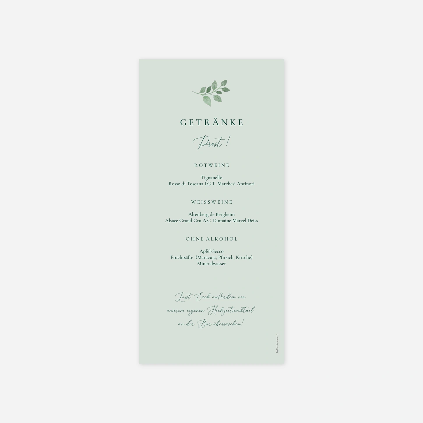 Die Menükarte "Zarte Ranken" begleitet Ihre Gäste geschmackvoll durch den Abend. Sie rundet das Tischbild ab und informiert auf elegante Weise über die kulinarischen Highlights Ihrer Hochzeit.