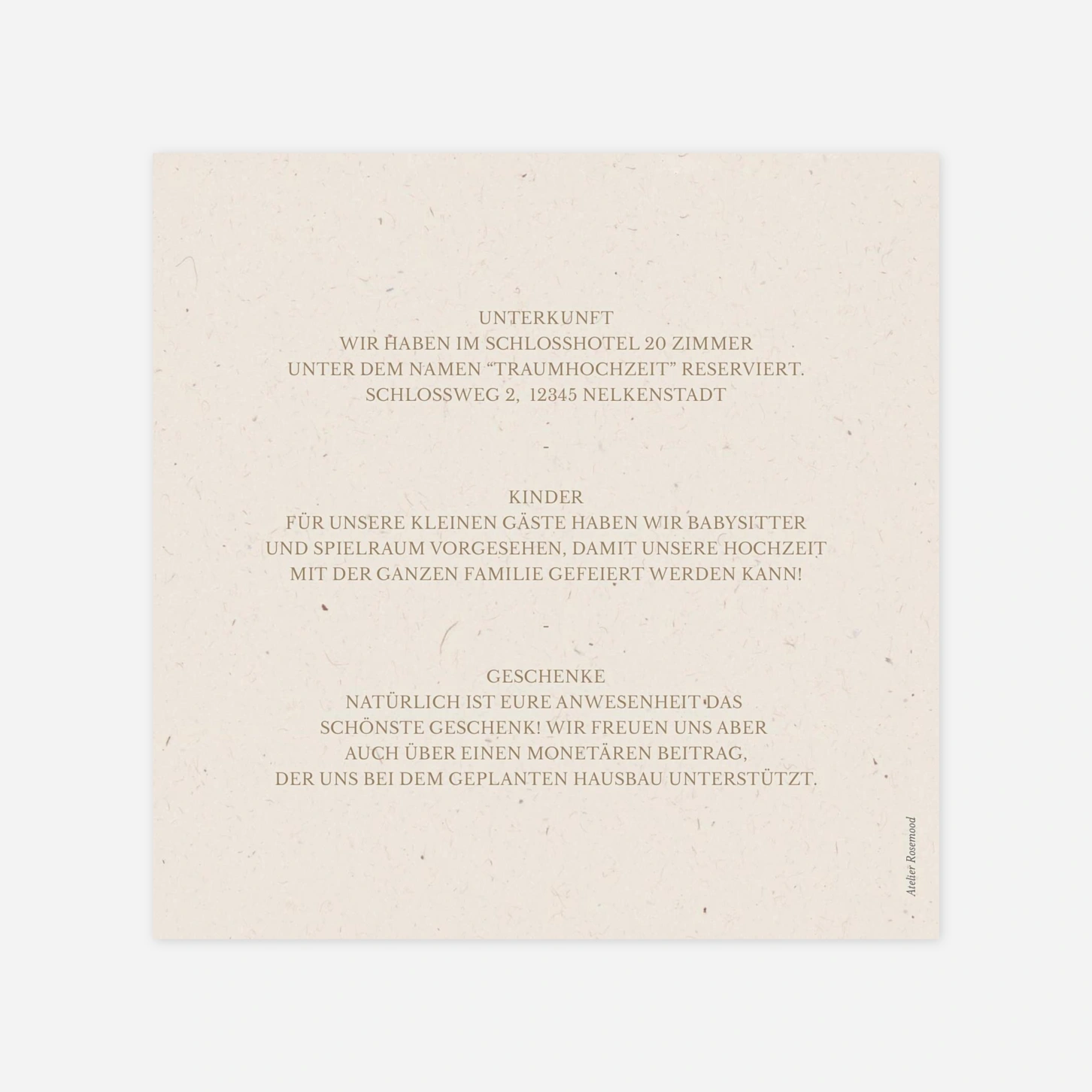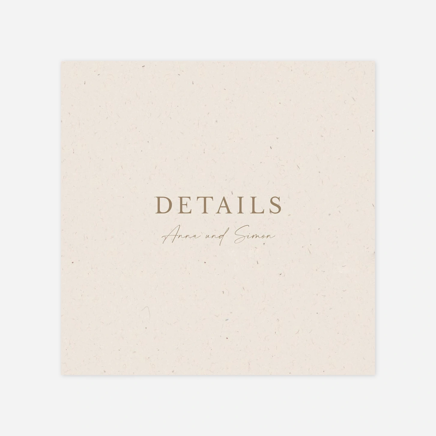 Mit der Beilegekarte "Passepartout" geben Sie Ihren Gästen zusätzliche Informationen zur Feier weiter – ob Ablauf, Dresscode oder Übernachtungstipps. Ein stilvolles Extra, das Ihre Einladung perfekt ergänzt.