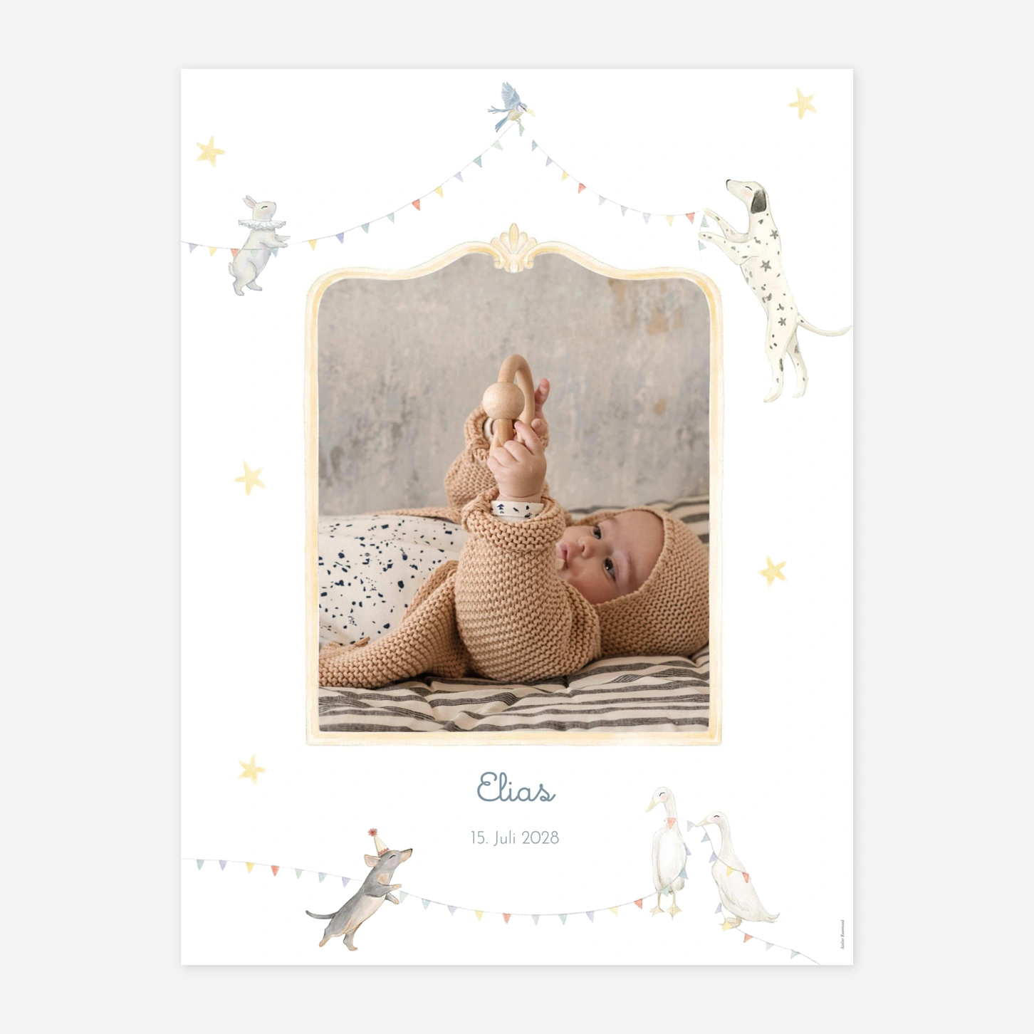Das Poster "Kleiner Zirkus" bringt fröhliche Zirkus-Atmosphäre direkt ins Kinderzimmer. Mit liebevollen Illustrationen wird es schnell zum dekorativen Highlight an der Wand und sorgt für eine spielerische Stimmung. Wie all unsere Poster wird auch dieses Design mit großer Sorgfalt und in unserer eigenen Werkstatt hergestellt. Ein wunderschönes Detail, das das Reich Ihres Kindes auf charmante Weise ergänzt.