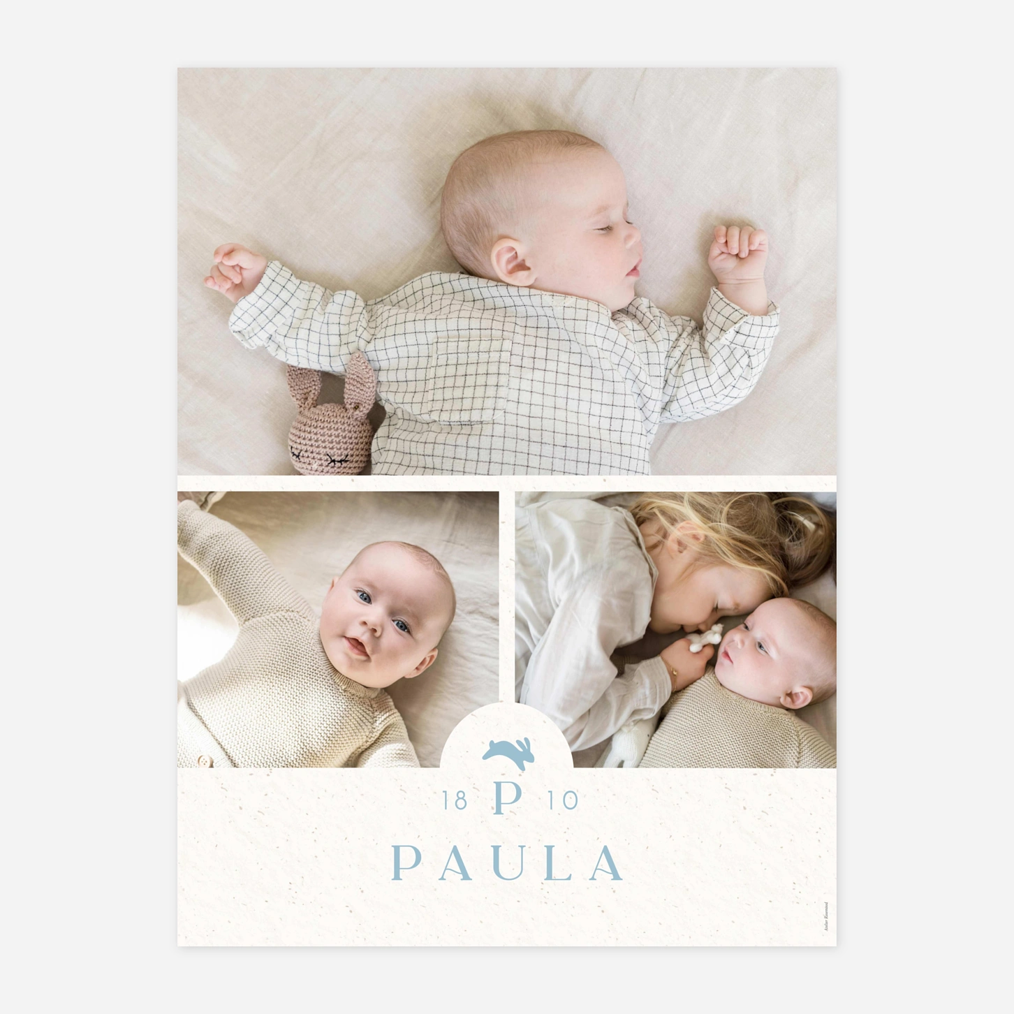 Das Geburtsposter "Kleines Häschen" fängt die ersten Momente Ihres Babys mit liebevoller Schlichtheit ein. Zarte Details und das kleine Häschen-Motiv verleihen dem Design eine sanfte, poetische Note – perfekt, um den Namen und das Geburtsdatum stilvoll festzuhalten. Dieses Poster ist nicht nur eine persönliche Erinnerung, sondern auch ein wunderschöner Blickfang im Kinderzimmer. In unseren eigenen Ateliers in Deutschland und Frankreich gefertigt, überzeugt es durch feine Druckqualität und hochwertige Materialien.