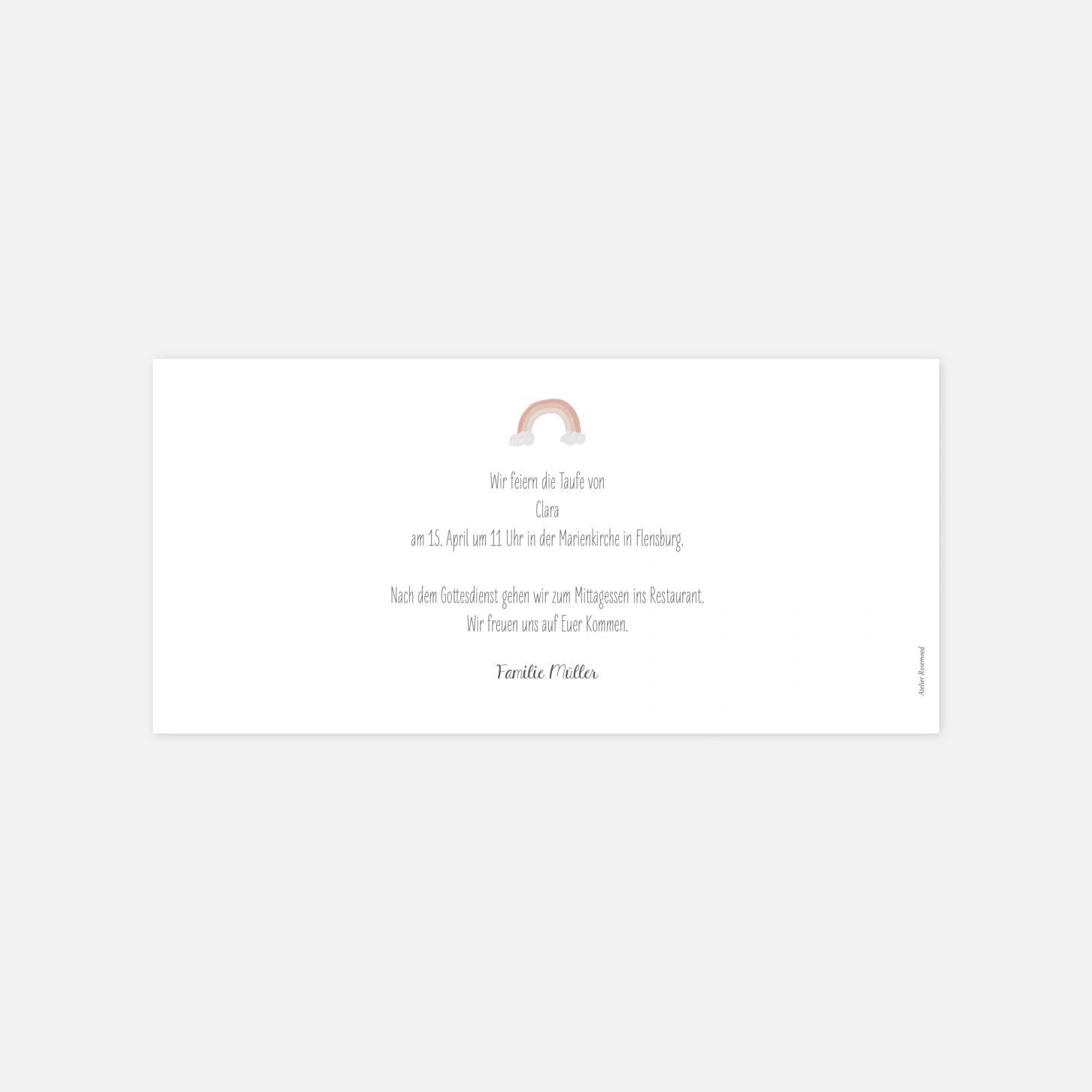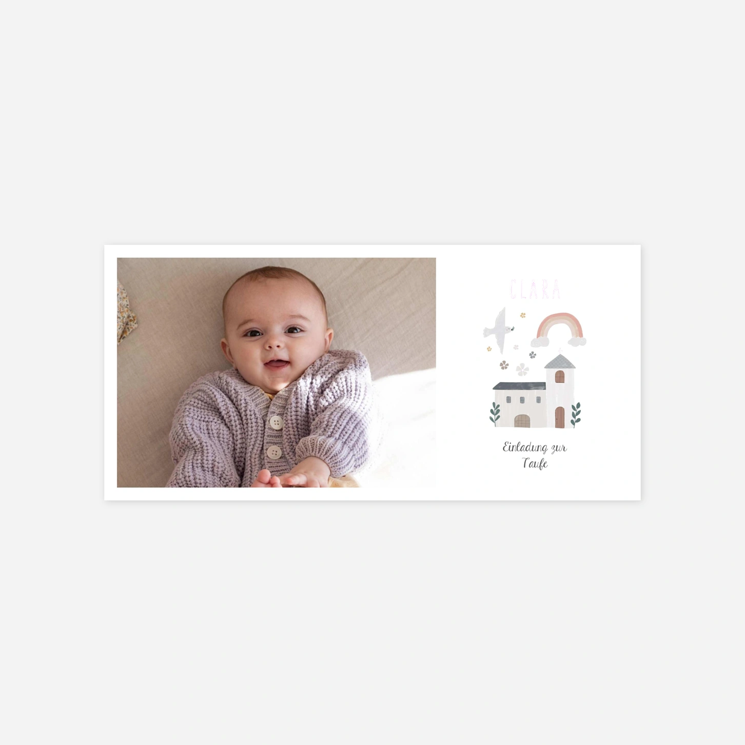 Die Taufeinladung „Kleine Kapelle Foto“ begleitet Sie mit sanfter Symbolik und liebevollen Illustrationen durch einen ganz besonderen Moment im Leben Ihres Kindes. Das harmonische Motiv verleiht dieser Einladung zur Taufe eine ruhige, wertige Ausstrahlung und lässt sich individuell personalisieren, wenn Sie Ihre Taufeinladung gestalten möchten. Alle Designs werden von unserem Kreativteam entworfen und in unseren eigenen Produktionsstätten in Deutschland und Frankreich mit großer Sorgfalt gefertigt. Lassen Sie Ihre Einladung zur Taufe drucken lassen und gestalten Sie Ihre Karte ganz einfach online.