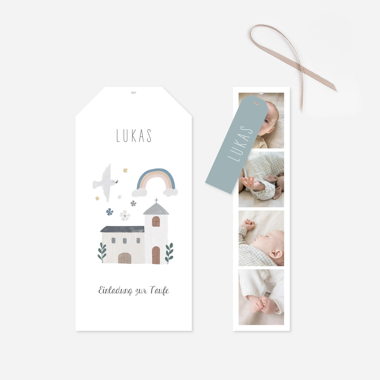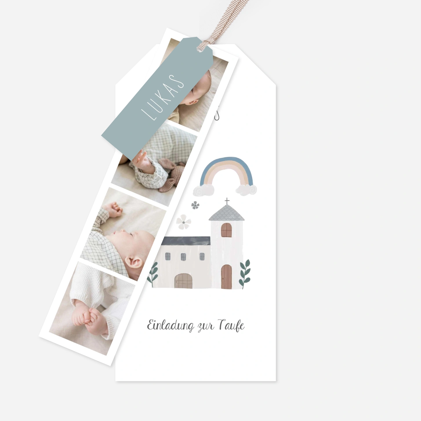 Die Taufeinladung „Kleine Kapelle“ begleitet diesen besonderen Moment mit einer sanften, kindgerechten Illustration und viel Raum für persönliche Erinnerungen. Diese liebevoll gestaltete Taufeinladung verbindet Symbolik und Leichtigkeit und lässt sich ganz individuell anpassen – ideal, um Ihre Einladung zur Taufe drucken zu lassen. Gestalten Sie Ihre Taufeinladung online und fügen Sie Fotos sowie Ihren Wunschtext harmonisch ein. Wie alle unsere Designs wurde auch dieses Motiv in unserem Atelier entworfen und in unseren eigenen Produktionsstätten mit großer Sorgfalt gefertigt.