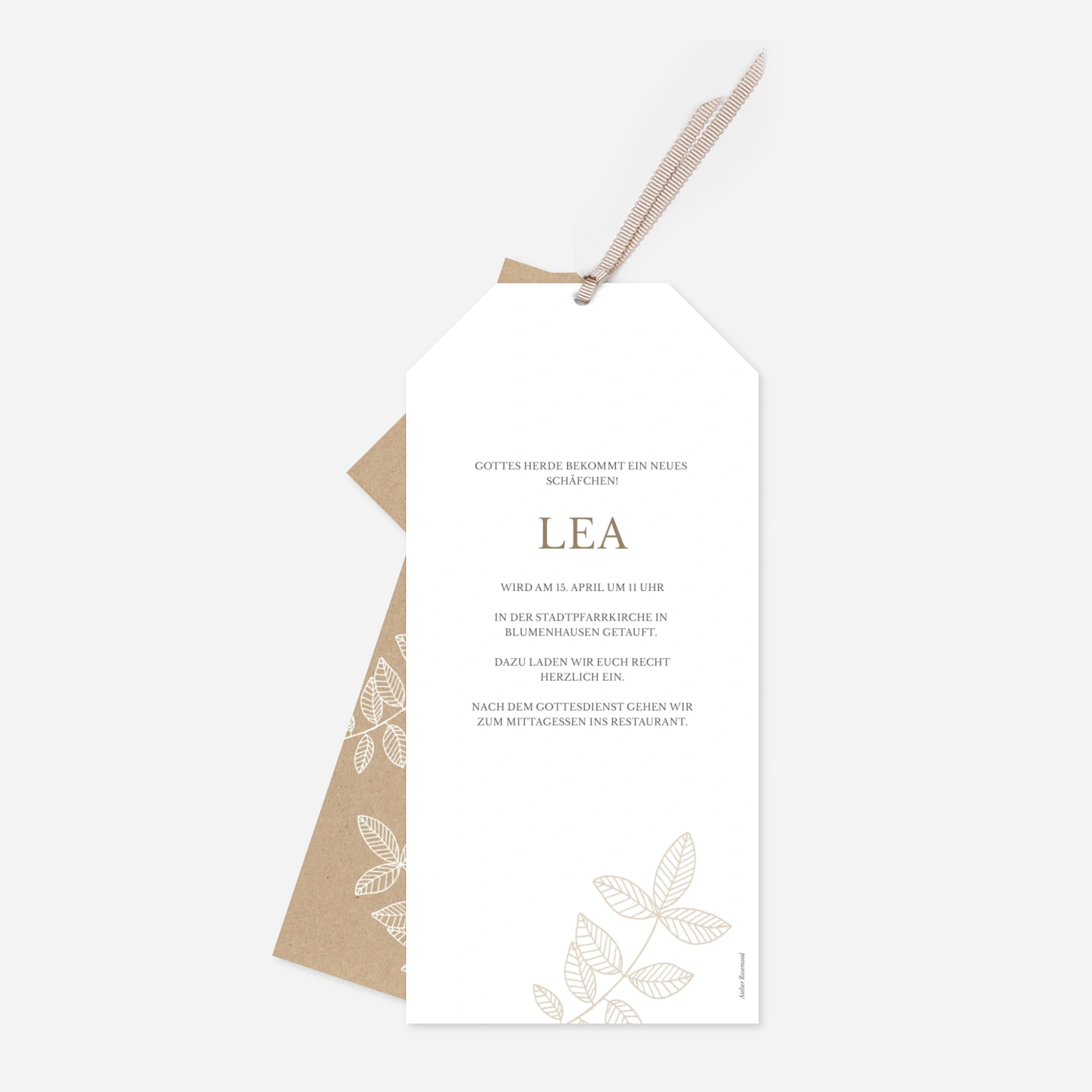 Die Taufkarte „Kleiner Schutzengel“ verleiht der Einladung zur Taufe eine besonders liebevolle und geborgene Ausstrahlung. Das ruhige, fotobetonte Layout stellt Ihr Kind in den Mittelpunkt und schafft einen emotionalen Rahmen für diesen bedeutungsvollen Moment. Ideal für alle, die eine Taufkarte gestalten oder eine Einladung zur Taufe drucken lassen möchten, die zeitlos und persönlich wirkt. Das Design wurde in unserem Atelier entworfen und in unseren eigenen Produktionsstätten in Deutschland und Frankreich mit viel Sorgfalt gefertigt.