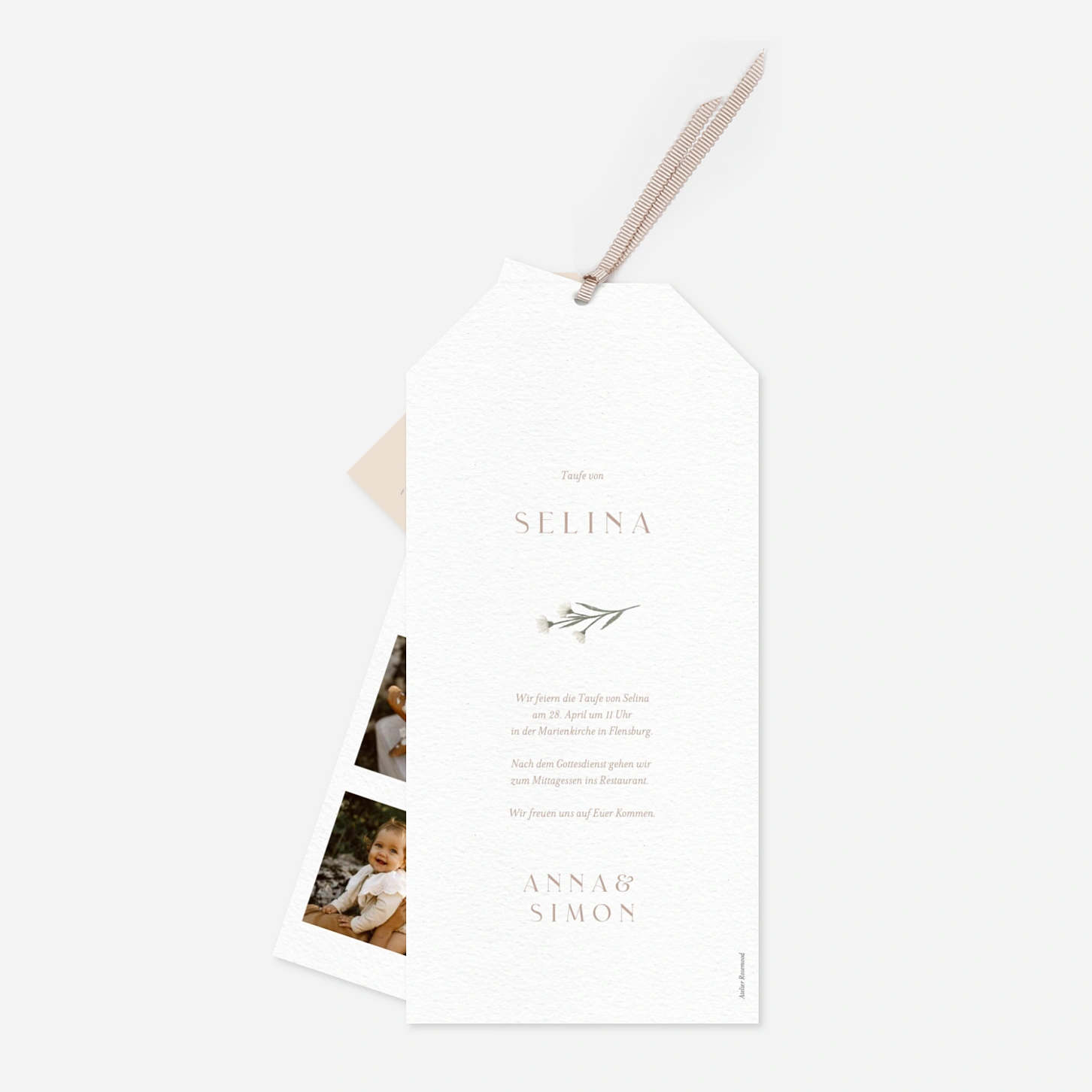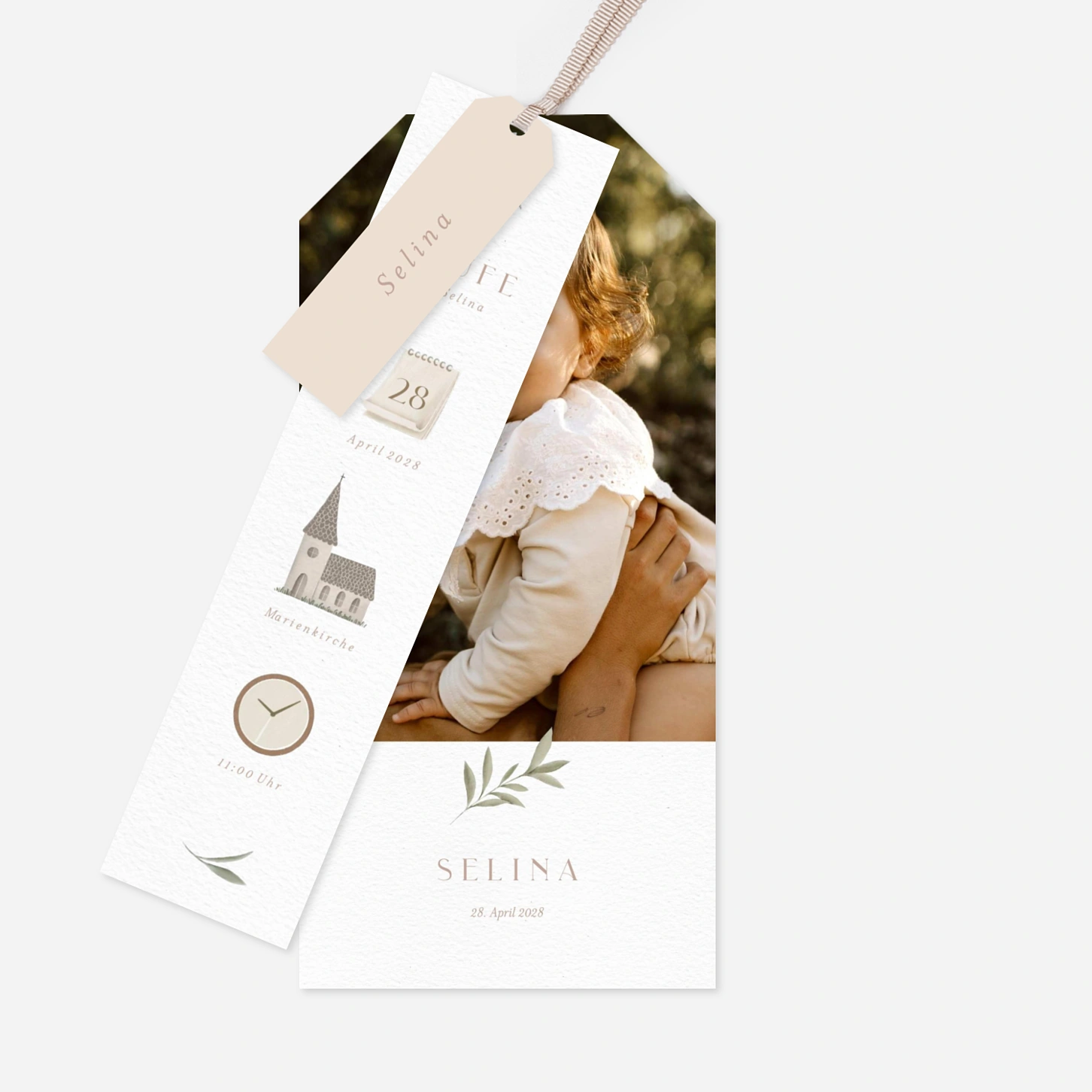 Die Taufkarte „Zartes Taufgrün“ begleitet diesen besonderen Tag mit einer ruhigen, liebevollen Gestaltung und viel Raum für Ihr persönliches Foto. Zarte botanische Elemente und eine klare Typografie verleihen der Einladung zur Taufe eine zeitlose Eleganz, die sowohl modern als auch herzlich wirkt. Ideal, um eine Taufkarte zu gestalten, die Erinnerungen bewahrt und Ihren Gästen alle wichtigen Informationen stilvoll vermittelt. Wie alle unsere Designs wurde auch diese Taufkarte in unserem Atelier entworfen und in unseren eigenen Produktionsstätten in Deutschland und Frankreich mit größter Sorgfalt gedruckt.