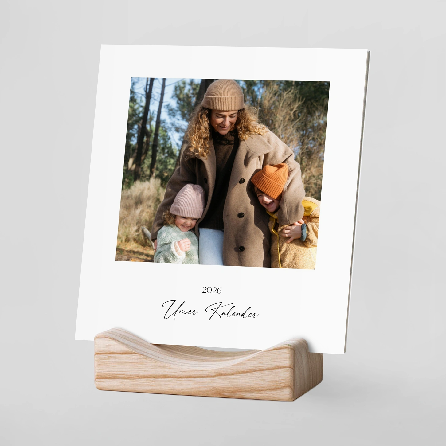 Das praktische Format unseres Fotokalenders eignet sich perfekt für den Schreibtisch. So sind Sie nicht nur bestens organisiert, sondern haben auch Fotos Ihrer Liebsten am Arbeitsplatz. Das elegante Design des Holzaufstellers und der Fotokarten eignet sich aber auch wunderbar als Deko-Objekt für die eigenen vier Wände oder zum Verschenken an Freunde und Familie.