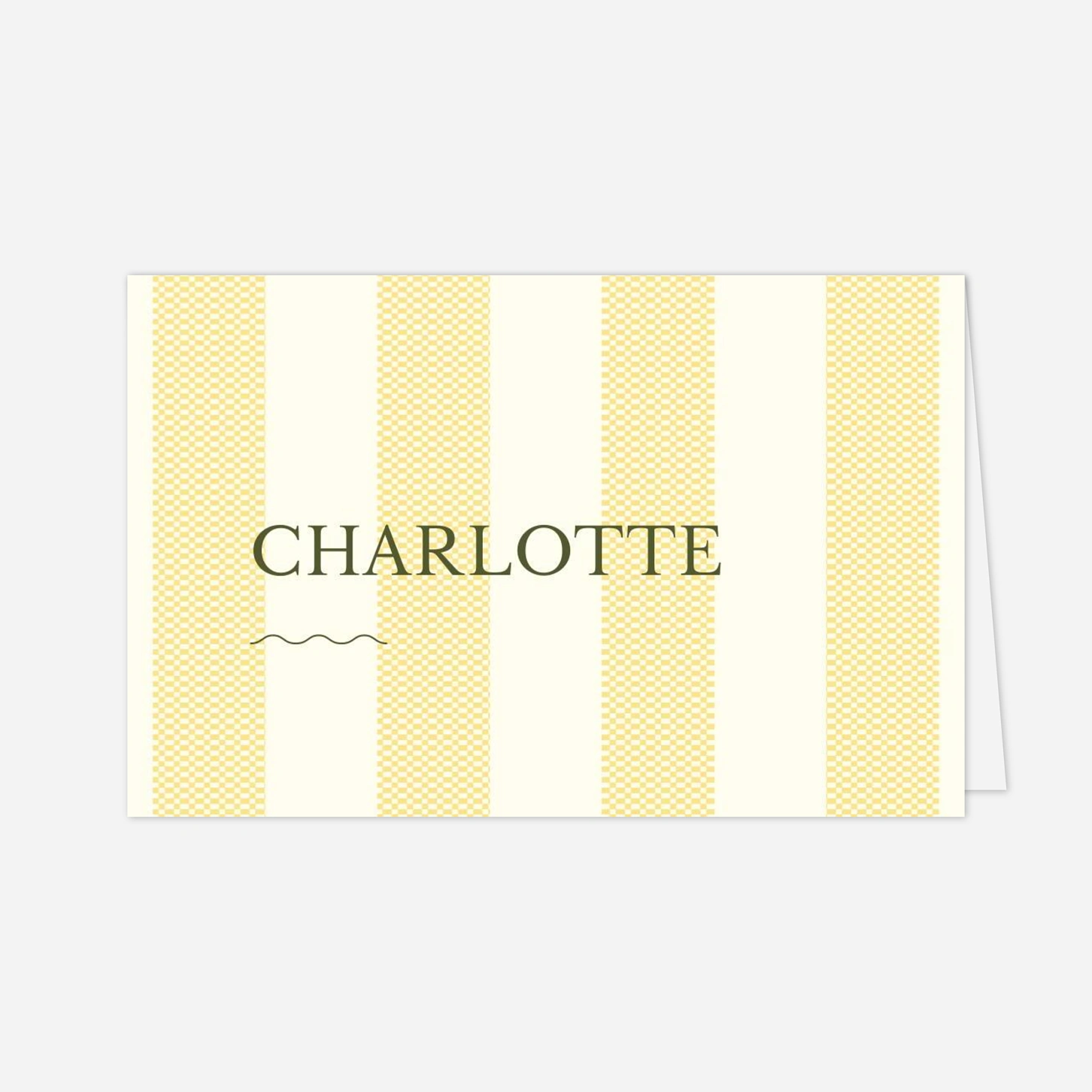 Die Platzkarte "Dolce Amore“ ist ein unverzichtbares Accessoire, um Ihre Gäste stilvoll zu platzieren. Die feinen hellblauen oder gelben Streifen und das schlichte Design verleihen Ihrer Tischdekoration eine sommerliche Note im italienischen Stil.