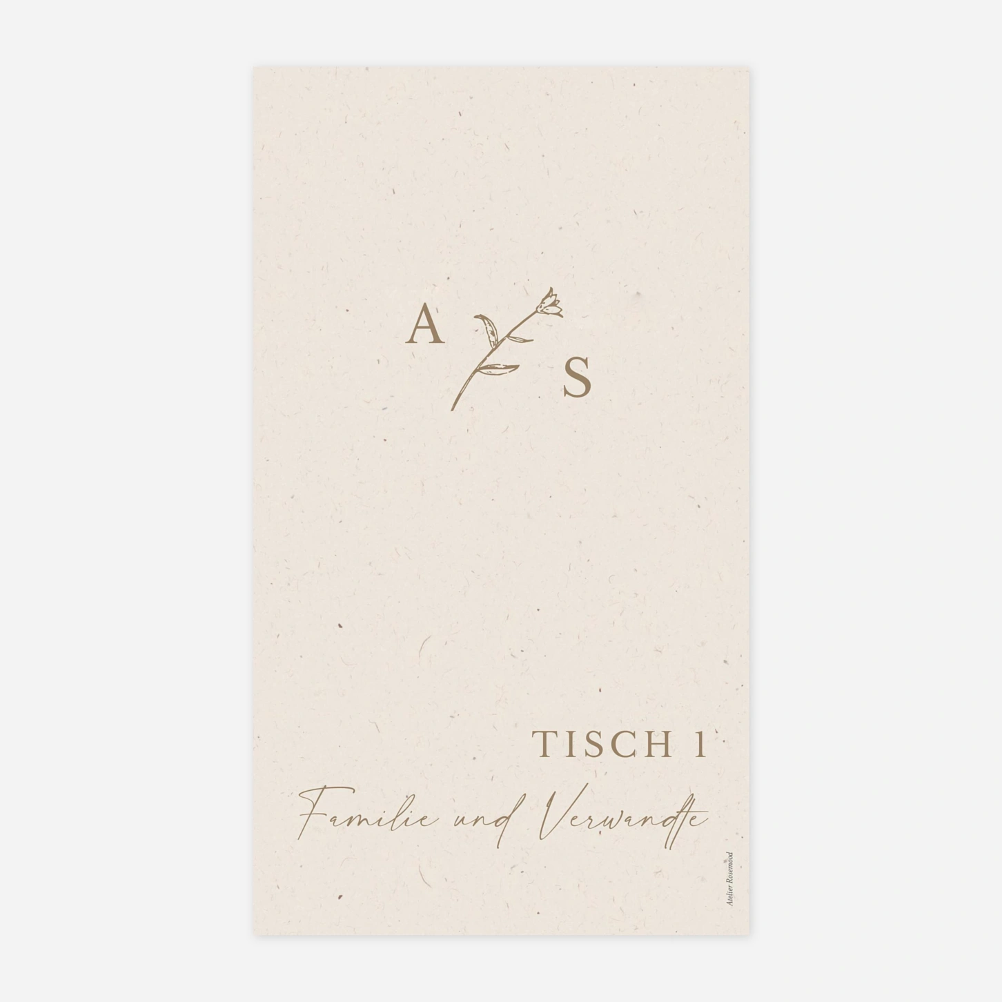 Die Tischkarte "Passepartout" passt perfekt zu einer modernen und schlichten Hochzeit. Mit ihrer klaren Gestaltung und dem dezenten floralen Detail fügt sie sich unaufdringlich in jedes Tischkonzept ein. Helfen Sie Ihren Gästen dabei, sich leicht zurechtzufinden. Ideal für alle, die es stilvoll, aber nicht überladen mögen.