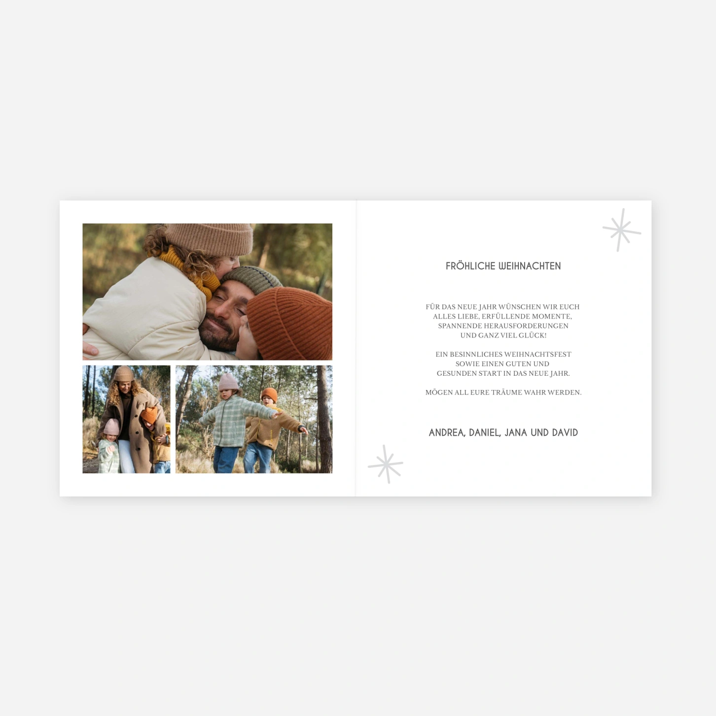 Die Weihnachtskarte "Candycane Greetings" besticht durch ihre moderne, schwungvolle Typografie, die auf dem dunklen Hintergrund besonders edel zur Geltung kommt. Mit dieser stilvollen Karte senden Sie herzliche Weihnachtsgrüße an Ihre Liebsten und wünschen gleichzeitig einen gesunden Start in das neue Jahr. Unsere Designs werden mit viel Liebe in unseren hauseigenen Ateliers entworfen, um Ihre festlichen Botschaften perfekt zu unterstreichen. Dank unserer eigenen Produktion in Deutschland und Frankreich garantieren wir Ihnen eine präzise Druckqualität auf unseren hochwertigen Papieren. Gestalten Sie Ihre persönlichen Weihnachtsgrüße jetzt ganz einfach online.
