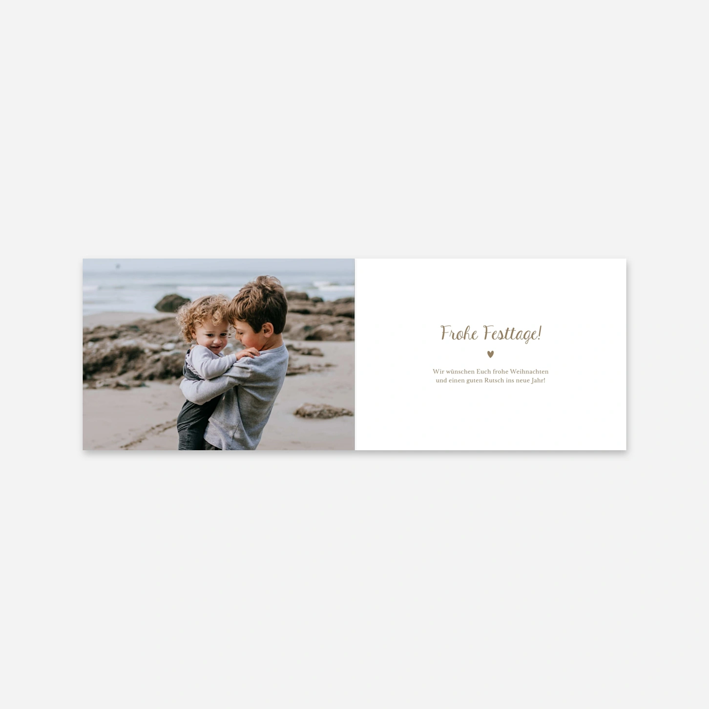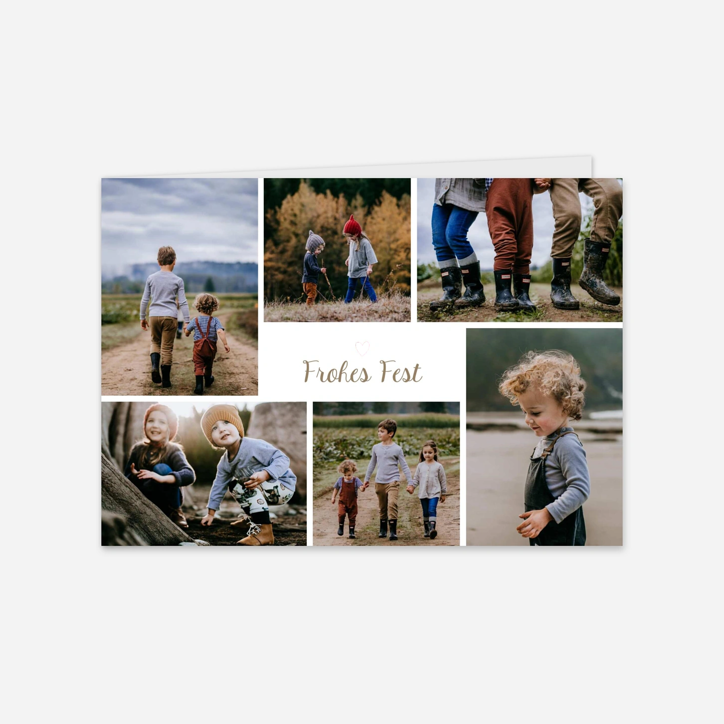 Die Weihnachtskarte „Glanzzeit“ fängt die schönsten Momente Ihrer Familie in einer harmonischen Collage ein. Mehrere Foto-Elemente lassen Raum, um besondere Erinnerungen des Jahres festzuhalten und in einer persönlichen Weihnachtsbotschaft weiterzugeben. So gestalten Sie eine festliche Karte, die Ihre Liebsten mit Nähe und Wärme erreicht. Produziert in unseren eigenen Werkstätten in Deutschland und Frankreich überzeugt sie mit hochwertigem Druck und sorgfältiger Verarbeitung. Gestalten Sie Ihr Unikat jetzt online und schenken Sie Freude zum Fest.