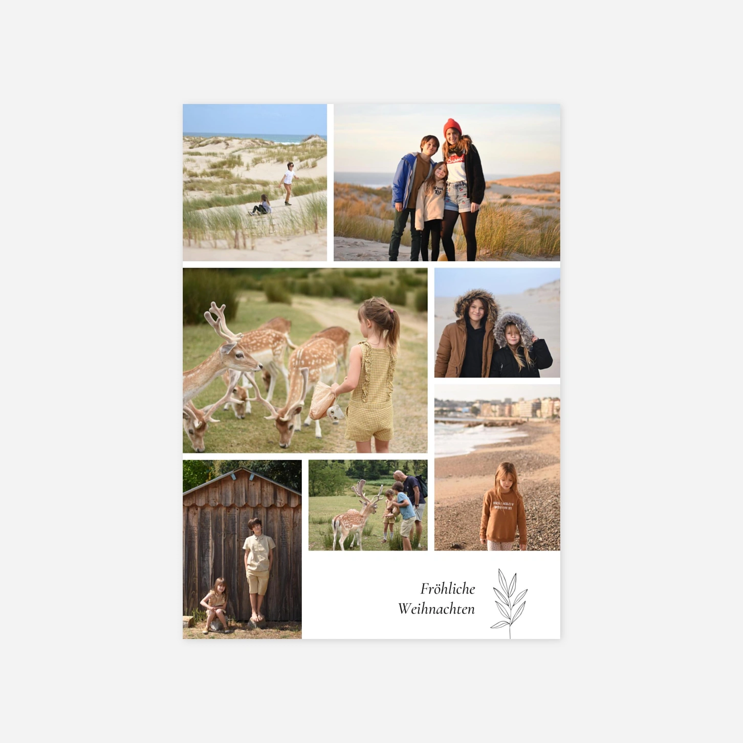 Wählen Sie die schöne Weihnachtskarte Kleiner Sprössling aus, um Weihnachtsfreude zu versenden. Diese pfiffige Weihnachtskarte strahlt winterliche Gemütlichkeit aus. Senden Sie festliche Weihnachts- und Neujahrsgrüße an Ihre Lieben. Diese Karte überzeugt alle mit ihrem schlichten Design. Auf dem vorderen Fotostreifen haben bis zu drei Fotos Platz. Hängen Sie diesen dekorativ an einen Kühlschrank oder nutzen Sie ihn als Lesezeichen. Es stehen Ihnen bei dieser Weihnachtskarte vier adrette Farbvarianten zur Auswahl. Fügen Sie auf der letzten Seite ein weiteres Foto ein, das Sie gerne mit Freunden und Familie teilen möchten. Möchten Sie einen kleinen weihnachtlichen Spruch festhalten? Lassen Sie sich von unseren Beispielen inspirieren. Wählen Sie in unserem Editor die gewünschte Schriftart aus und passen Sie die Schriftfarbe nach Ihrem Geschmack an. Bei Fragen jeglicher Art wenden Sie sich jederzeit an unseren kompetenten Kundenservice.