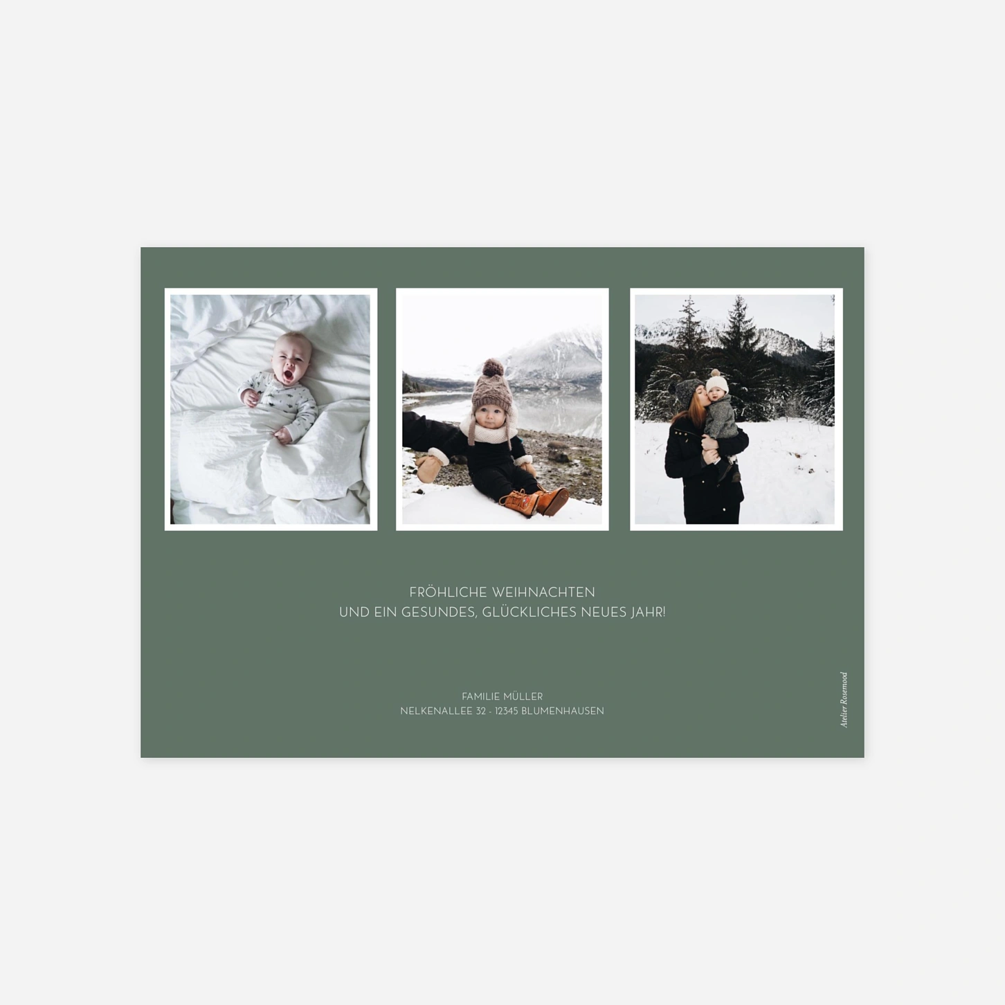 Die schönsten Weihnachtsgrüße kommen dieses Jahr von Ihnen mit unserer einzigartigen Weihnachtskarte Liberty Blumen (Klappkarte). Die florale Weihnachtskarte ist in drei verschiedenen Farbausführungen verfügbar: Kraft, Dunkelrot oder ein saftiges Tannengrün. Die Klappkarte kann in unserem einfach zu bedienenden Online-Editor ganz nach Ihren Vorstellungen personalisiert werden. Die Vorderseite verziert ein buntes florales Muster mit Zweigen, Blätter und kleinen Beeren. Auf den beiden Innenseiten der Weihnachtskarte Liberty Blumen findet sowohl eins Ihrer schönsten Fotos, wie auch Ihre ganz persönlichen Weihnachtsgrüße Platz. Sie suchen nach Inspiration für die schönsten Weihnachtstexte? Dann schauen Sie auf unserer Textideen Weihnachten Seite vorbei!