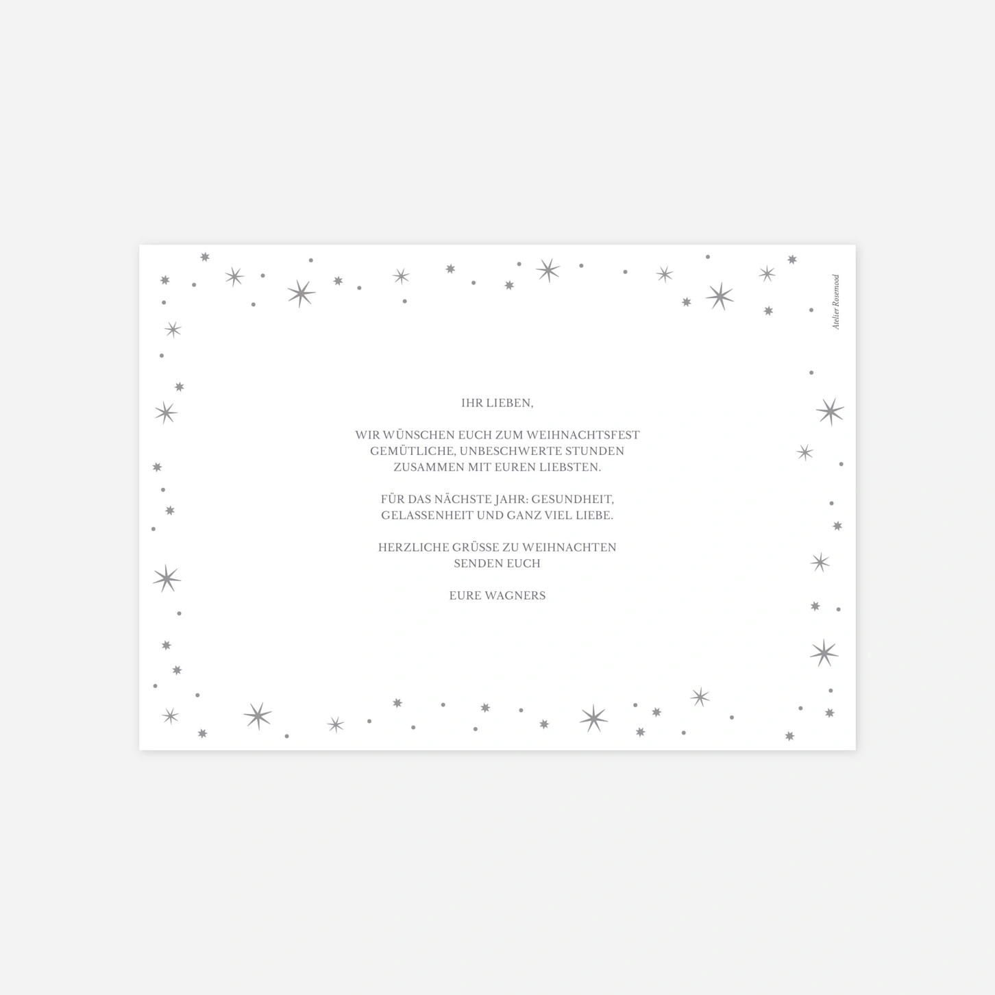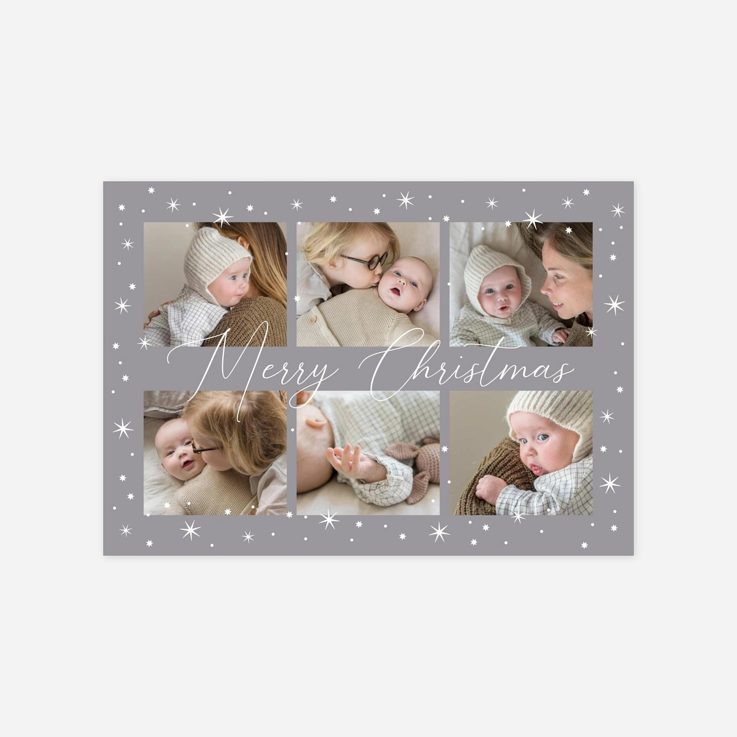 Die Weihnachtskarte "Sternenfreude" verzaubert durch ein harmonisches Zusammenspiel aus Ihren schönsten Familienfotos und einem feinen Regen aus goldenen sowie weißen Sternen. Dieses liebevolle Design bietet Ihnen die perfekte Möglichkeit, das vergangene Jahr Revue passieren zu lassen und herzliche Weihnachtsgrüße an Ihre Liebsten zu versenden. Unsere Karten werden mit größter Sorgfalt in unseren hauseigenen Ateliers für Sie gefertigt, um eine erstklassige Druckqualität zu garantieren. Nutzen Sie unseren intuitiven Editor, um diese besondere Weihnachtskarte selbst zu gestalten und Ihre persönliche Botschaft einzufügen. Wir unterstützen Sie gerne dabei, Ihre festlichen Grüße in ein hochwertiges Erinnerungsstück zu verwandeln.