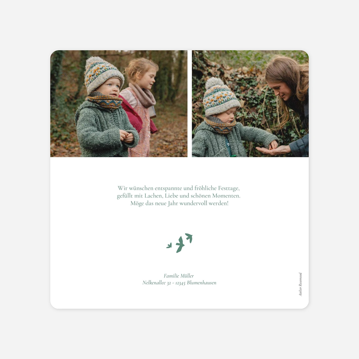 Die Weihnachtskarte "Tierische Weihnacht" begeistert mit charmanten Tierillustrationen und einem verspielten Design. Ein liebevoller Gruß, der besonders bei Familien mit Kindern oder Tierliebhabern für Freude sorgt.