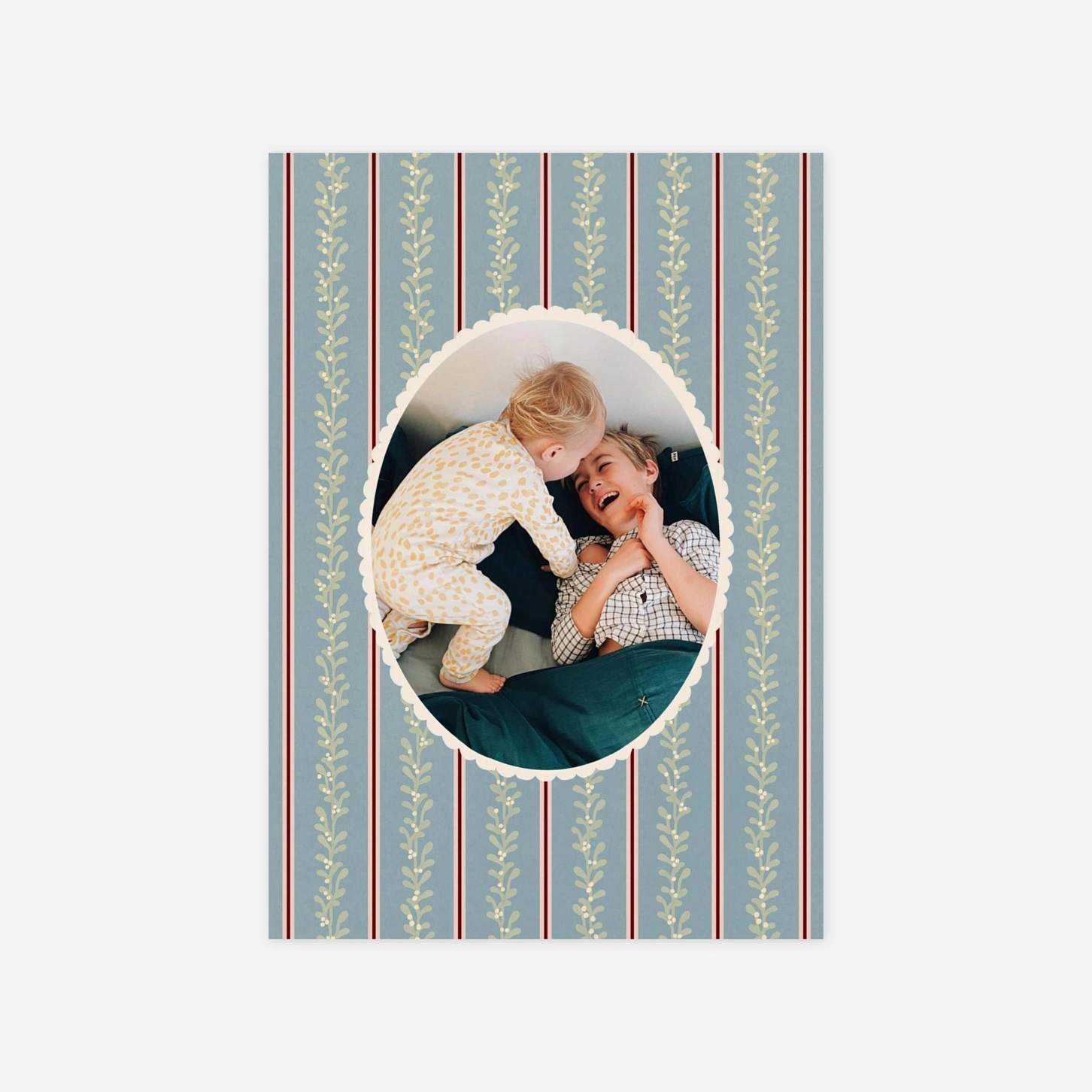Die Weihnachtskarte "Vintage Moment" verströmt den zeitlosen Charme vergangener Tage. Ein stilvolles Muster, kombiniert mit einer feinen Umrahmung und eleganter Typografie, sorgt für ein harmonisches Design voller Nostalgie und Raffinesse. Der verspielte Rahmen mit Vintage-Muster setzt Ihr Foto stimmungsvoll in Szene und macht die Karte zu einem ganz persönlichen Erinnerungsstück. Ideal, um Familie und Freunde mit festlichen Grüßen und einem besonderen Bild zu überraschen.