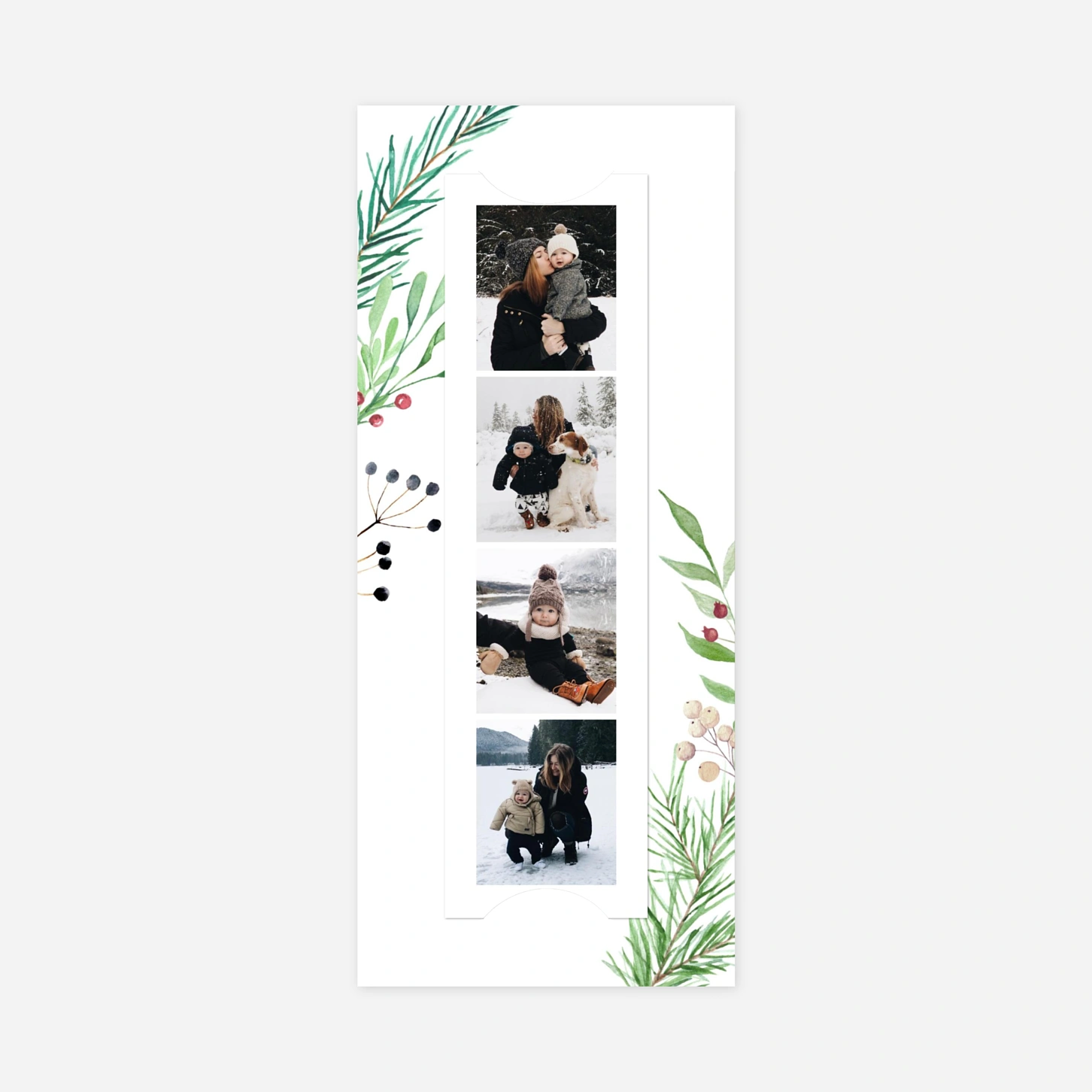 Versenden Sie dieses Jahr unsere Weihnachtskarte Weihnachtsbeeren. Das winterliche Design wurde von unserem hauseigenen Team namens Le Collectif designt und erfreut Ihre Verwandten und Freunde sicherlich genauso sehr wie uns! Die Weihnachtskarte hat insgesamt vier personalisierbare Seiten, die nach Lust und Laune in unserem Online-Editor angepasst werden können. Die Vorderseite ziert ein personalisierbares Fotofeld, umgeben von kleinen Zweigen mit Beeren daran. Darunter finden Sie ein personalisierbares Textfeld, in das Sie den Text Ihrer Wahl setzen können. Auf der Innenseite der Weihnachtskarte Weihnachtsbeeren finden zwei weitere Fotos Platz, zusammen mit einem großen Textfeld. Die Rückseite der Weihnachtskarte ist in einem modernen Kraftpapier Look designt und bietet Platz für das Einfügen Ihrer Adresse. Sie haben eine Frage? Unser Kundenservice freut sich Ihnen weiterhelfen zu können. Sie erreichen uns werktags per E-mail, Chat oder Telefon.