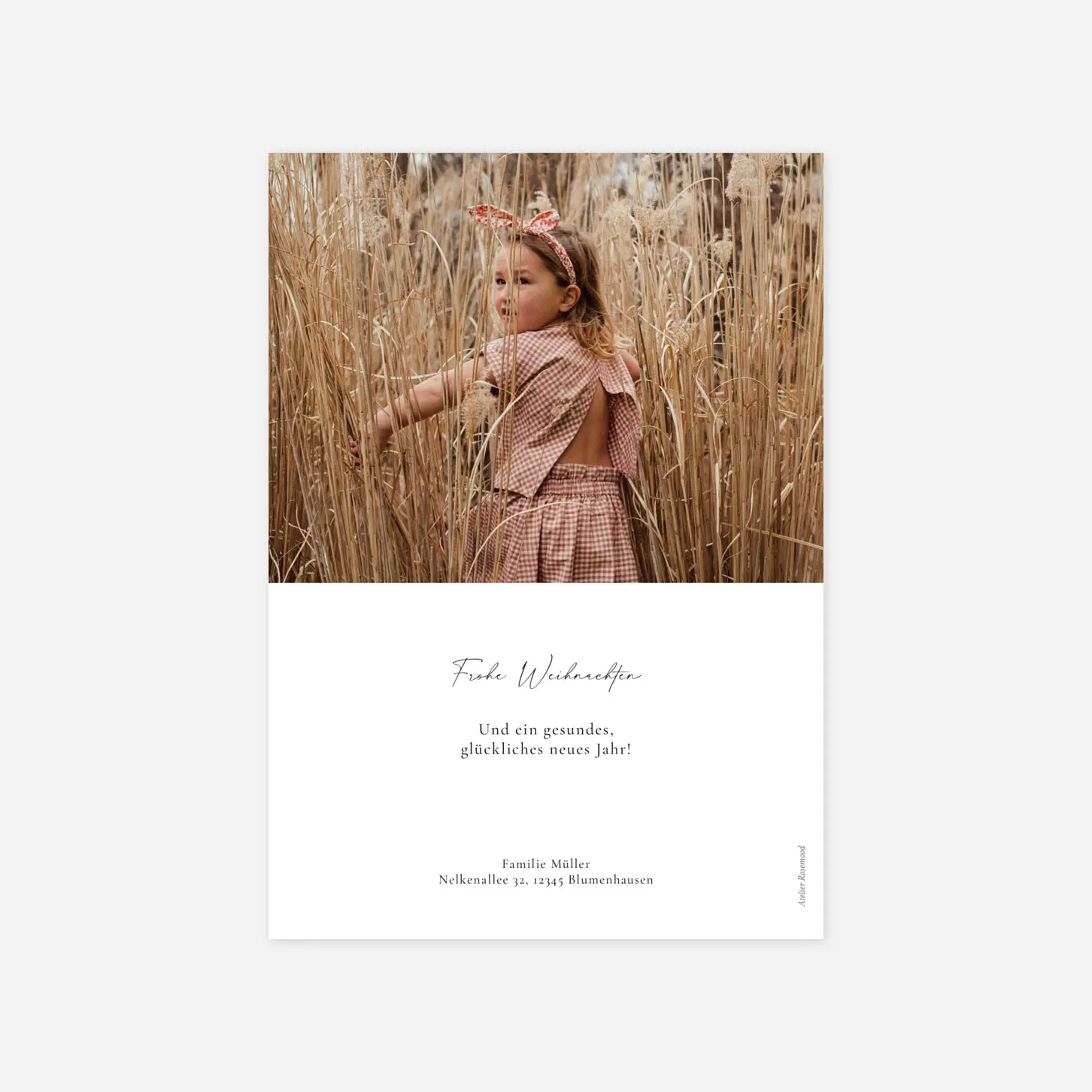Mit unserer Weihnachtskarte Wintermedaillon überbringen Sie Ihre Festtagsgrüße auf eine stilvolle und elegante Art und Weise. Die originelle Weihnachtskarte ist in verschiedenen Grüntönen oder einem klassischem Weiß erhältlich. Auf allen Farbvarianten wird Ihr liebstes Familienfoto mit einer Medaillon-Illustration besonders schön zur Geltung gebracht. Wählen Sie zum Schluss die Papiersorte, auf welcher Sie Ihre Kreation in gedruckter Form zum Leben erwecken möchten.