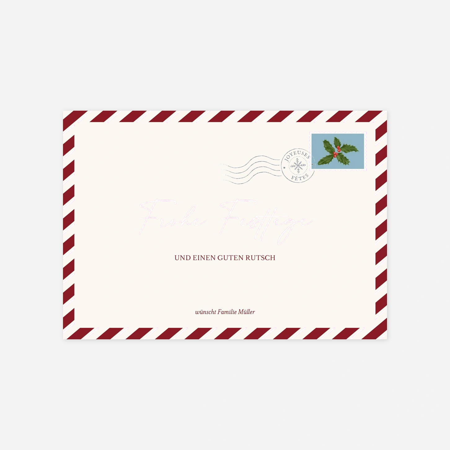 Mit der Weihnachtskarte "Winterpost" versenden Sie festliche Grüße im nostalgischen Stil. Mit ihrem stilvollen Design eignet sie sich perfekt, um Familie und Freunde mit persönlichen Worten durch die Weihnachtszeit zu begleiten. Jede Karte wird in unseren eigenen Werkstätten in Frankreich und Deutschland mit höchster Sorgfalt gedruckt. So überbringen Sie Ihre Wünsche nicht nur festlich, sondern auch besonders hochwertig.