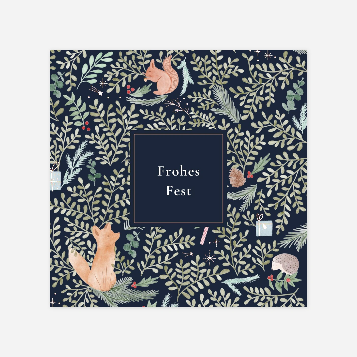 Verleihen Sie Ihren Weihnachtsgrüßen einen zauberhaften, natürlichen Charme mit der festlichen Karte Winterspaziergang. Die liebevoll gestaltete Illustration mit Sternen, Beeren und Tannenzweigen machen die Karte perfekt für alle, die natürliche Eleganz und winterliche Atmosphäre in ihren Weihnachtswünschen vereinen möchten.