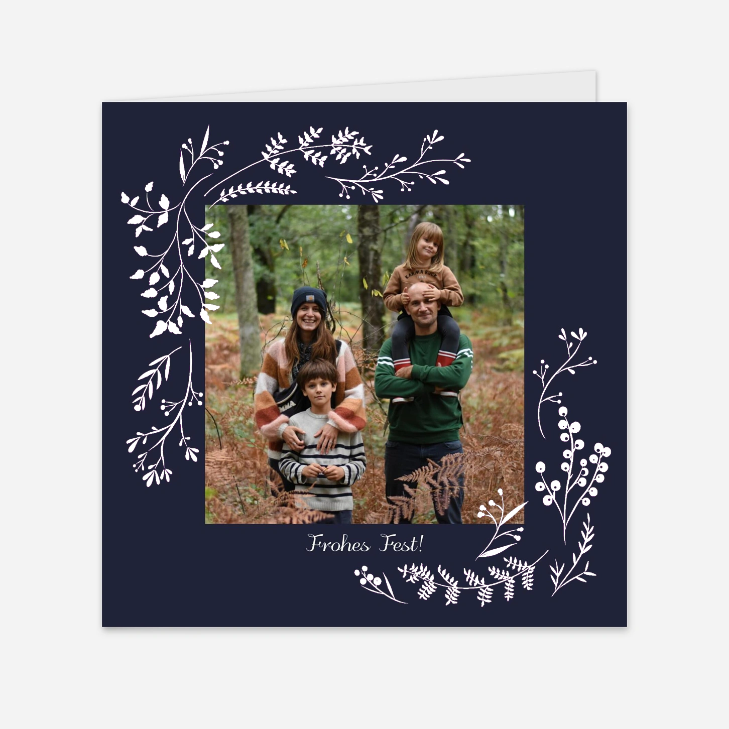 Die Winterzweige (Gold) Weihnachtskarte eignet sich hervorragend, wenn Sie Familie und Freunden auf eine sehr elegante Art ein frohes Fest wünschen möchten. Unsere talentierten Designer haben diese Weihnachtskarte mit viel Liebe zum Detail entworfen. Sie haben sich dabei von Motiven aus der Natur inspirieren lassen. Zweige und Blätter liegen den filigranen Motiven zugrunde, die dann abstrakt gezeichnet auf Ihrer Weihnachtskarte schimmern. Dieses schlichte und zugleich raffinierte Modell ist in vier Farben erhältlich: Dunkelblau, Dunkelgrün, Dunkelrot oder im authentischen Packpapier Look. Mit unserem Online-Editor können Sie Ihre Weihnachtskarte ganz nach Ihren Wünschen personalisieren. Wählen Sie schöne Fotos Ihrer Familie und lassen Sie somit das Jahr Revue passieren. Schwarz-Weiß-Fotos kommen auf dem farbigen Untergrund auch sehr gut zur Geltung. Wenden Sie sich an uns, wenn Sie Fragen oder Anmerkungen zu unseren verschiedenen Weihnachtskarten haben. Wir unterstützen Sie gerne bei Ihrer Bestellung und geben Ihnen wertvolle Tipps. Sie können das Atelier Rosemood per E-Mail, Chat oder Telefon erreichen.