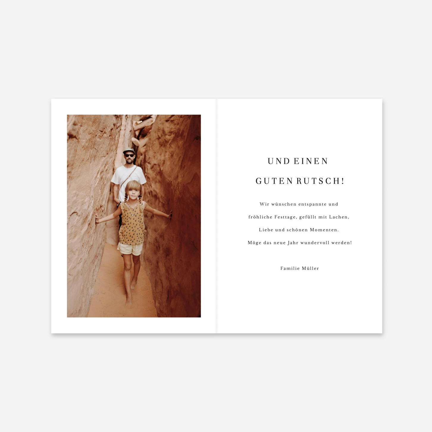 Die Weihnachtskarte „Zeit der Freude“ besticht durch ihr elegantes Design und warme Farbgebung. Mit einem stilvollen Schriftzug vermittelt sie eine Botschaft der Freude und Zusammengehörigkeit – perfekt für besinnliche Weihnachtsgrüße.