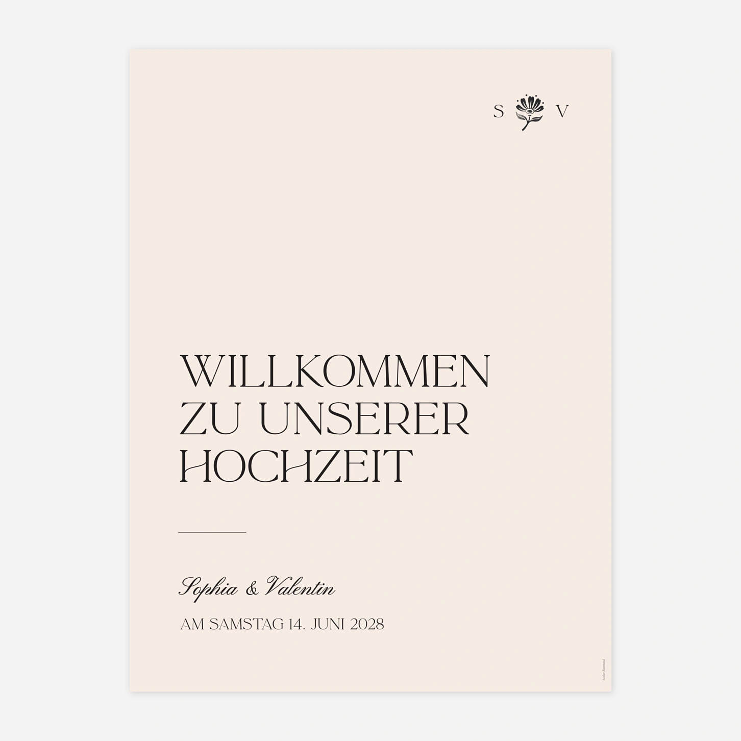 Begrüßen Sie Ihre Gäste mit dem Willkommensschild "Fleur minimale" und schaffen Sie schon beim Ankommen eine stimmungsvolle Atmosphäre. Hinweis: Das Schild wird ohne Aufsteller geliefert.